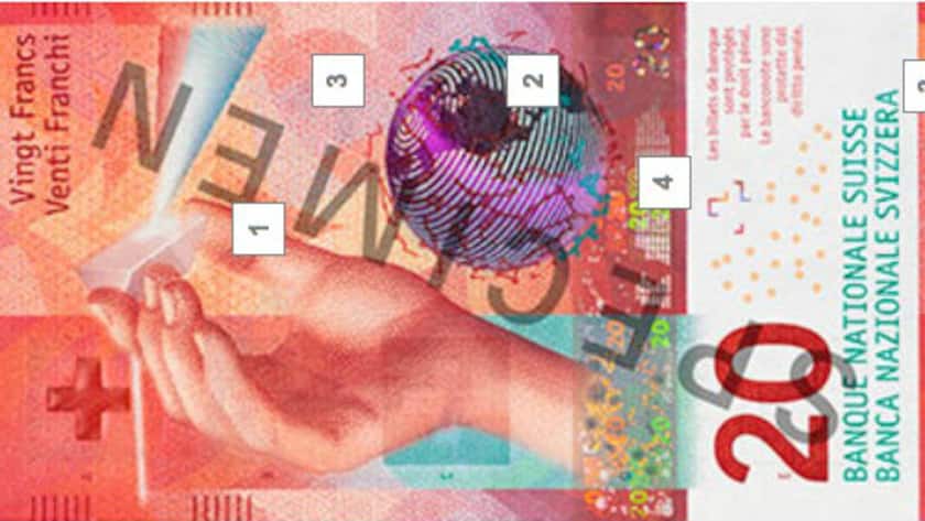 Bei der Serie 9 der Schweizer Banknoten gehört zur fälschungssichersten der Welt. 15 Sicherheitsmerkmale wie Kippeffekt, Wasserzeichen, Silberfäden oder Mikrotext sorgen dafür, dass Fälscher beim Kopieren die Haare raufen werden.