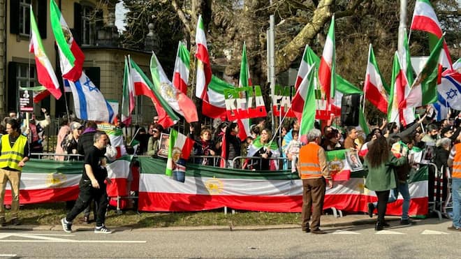 Gegen 200 Menschen haben am Samstag vor der iranischen Botschaft in Bern für den Sturz des iranischen Regimes demonstriert. „Free Iran“ war auf einem...