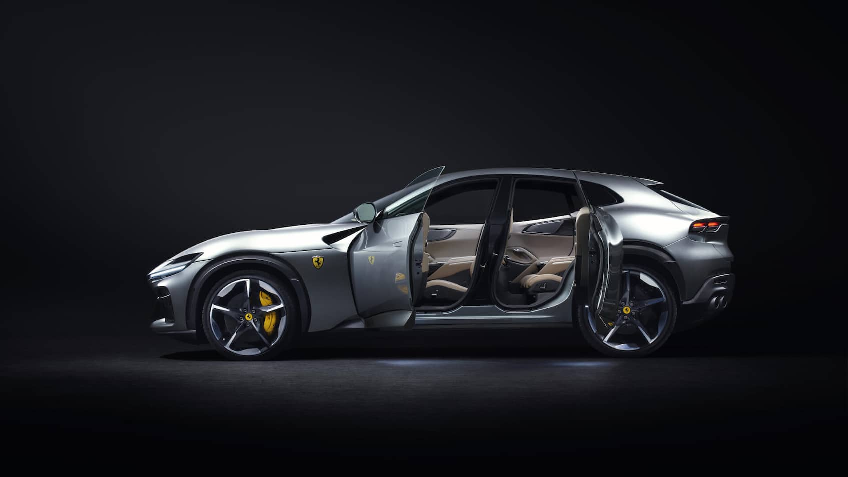 Mit dem viertürigen Purosangue wagt sich Ferrari nun auf Neuland. Um den Einstieg hinten zu erleichtern, öffnen sich die hinteren Türen gegen die Fahrtrichtung, und das auch mit elektrischer Hilfe. Letzteres ist unnötiger Schnickschnack. Der Purosangue ist höher als ein Mittelmotorsportwagen, der Einstieg entsprechend leichter. Die Karosserie wirkt aus einem Guss, die Motorhaube ist leicht gestreckt, was dem Wagen GT-Flair verleiht. Und Gott sei Dank verzichtet Ferrari auch beim ersten Viertürer auf spätpubertäres Flügelwerk.