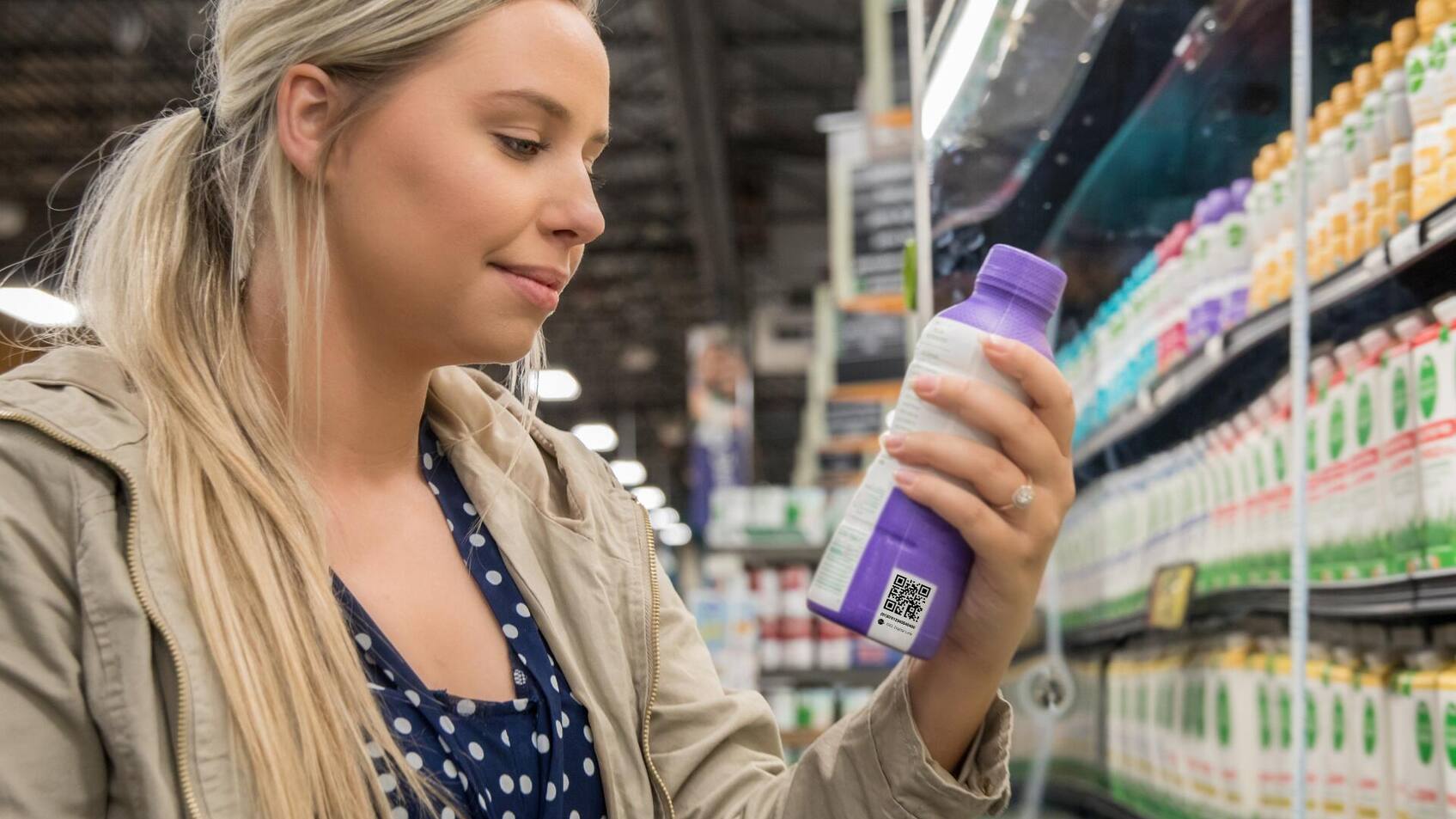 2D-Codes können deutlich mehr Informationen enthalten, und das auf derselben Fläche oder kleiner als der klassische Barcode. Neben der Artikelnummer lassen sich Produktionsdaten, Chargennummern, Mindesthaltbarkeitsdaten oder Herkunftsinformationen hinterlegen. So können Kassen und Logistik zusätzliche Daten für ihre Prozesse nutzen, während Konsumentinnen und Konsumenten per Smartphone-Scan direkt auf Produktinformationen zugreifen.
