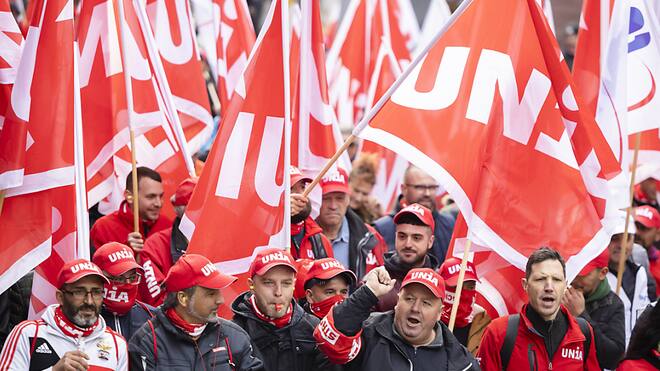 Tausende Westschweizer Bauarbeiter demonstrieren in Lausanne