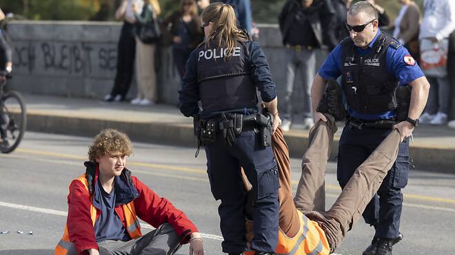 Sechs Aktivistinnen und Aktivisten der Organisation "Renovate Switzerland" haben am Samstagnachmittag in Bern den Verkehr über die Lorrainebrücke...