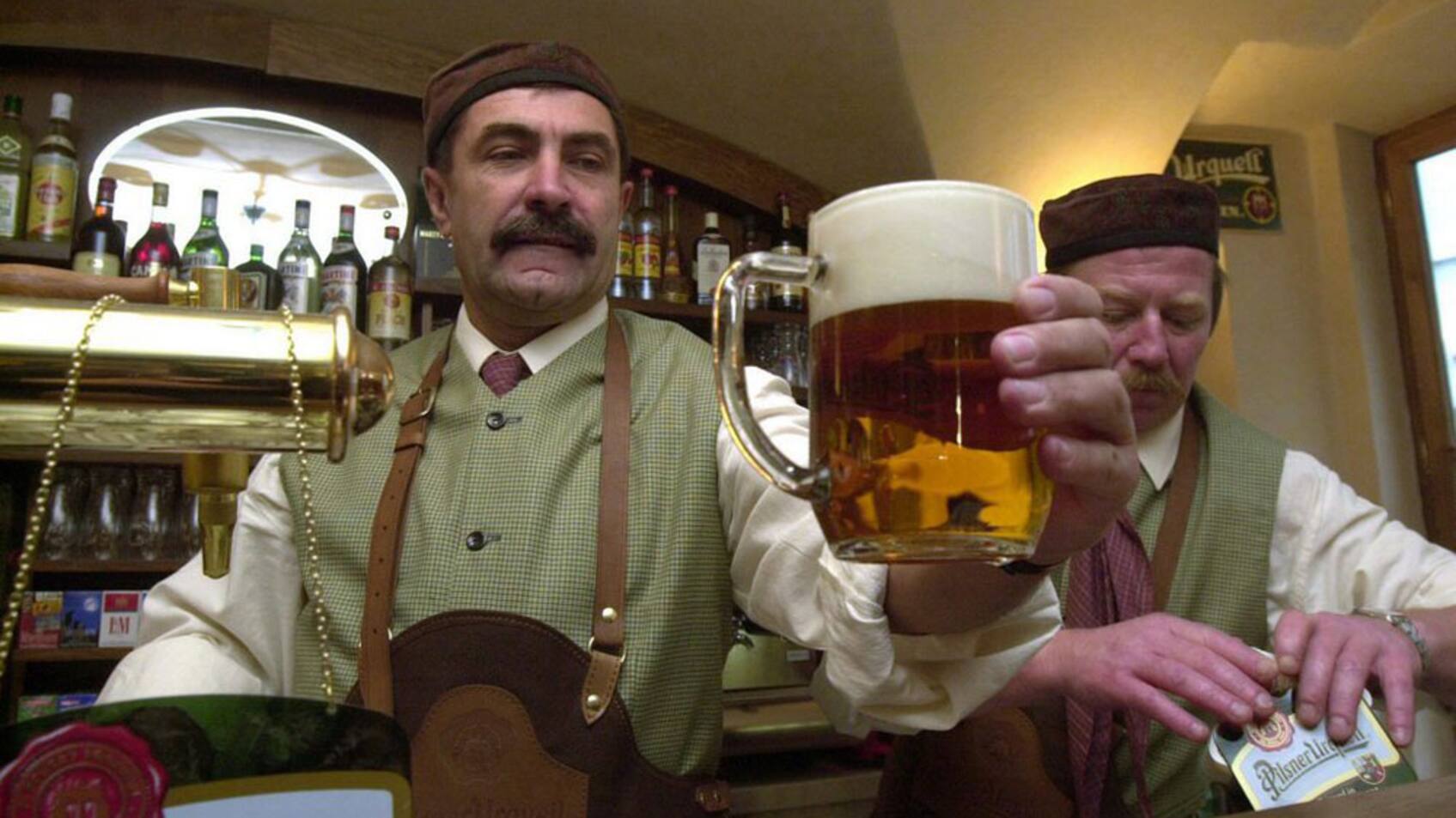 Auch wenn Deutschland das Reinheitsgebot erfunden hat, wird das meiste Bier pro Kopf mit Abstand in Tschechien getrunken. Mit 143 Litern je Einwohner - Kinder und Abstinenzler mitgezählt - im vorigen Jahr liegt das Land einsam an der Weltspitze. Halbliter-Flaschen sind das Standard-Mass in den Kneipen und Gaststätten. Auch Zwei-Liter-Plastikflaschen mit dem Gerstensaft sind in tschechischen Supermärkten nichts Besonderes.